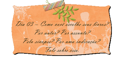 Na maioria das vezes o que me leva a escolher um livro é a sinopse (que leio frequentemente nos blogs) ou a indicação de alguém.